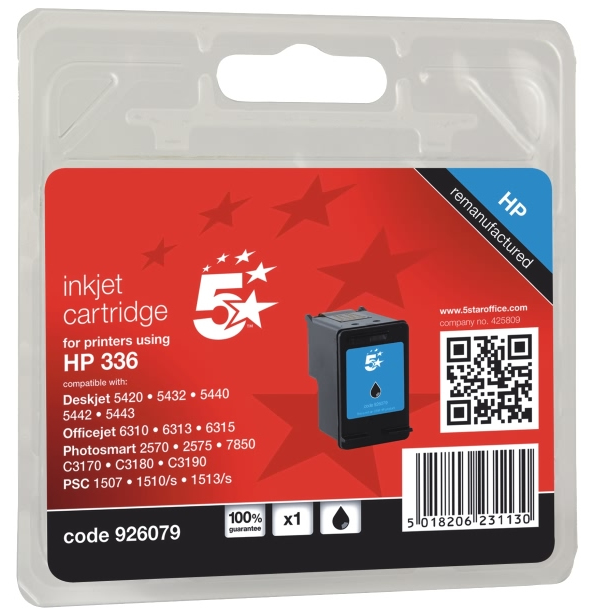 5Star 926079. Цвета печати: Черный, Совместимые продукты: HP Deskjet 5440, Officejet 6310, 6313, 6315, H470 series, Photosmart 2570 Series, 2575, 2710, 2713, , Тип упаковки: Блистер. Масса брутто: 63 г. Размеры упаковки (ШхГхВ): 119 x 55 x 98 мм