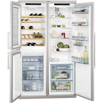 AEG S95500XZM0. Тип корпуса: Отдельностоящий, Цвет товара: Нержавеющая сталь, Дизайн: Американская дверь. Тип климата: SN-T. Размещение морозильной камеры: Сторона. Класс энергоэффективности: A+