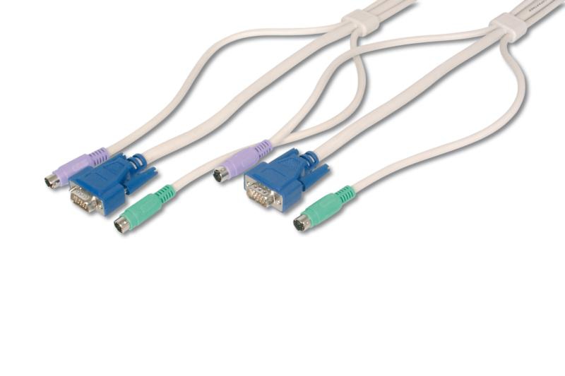 ASSMANN Electronic AK OC030MM. Длина кабеля: 3 м, Цвет товара: Белый. Разъем 1: 1x D-Sub, 2x PS/2, Разъем 2: 1x D-Sub, 2x PS/2, Тип рода: Папа/Папа