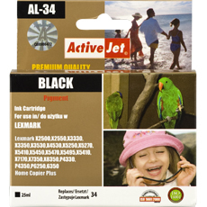 ActiveJet AL-34. Цвета печати: Черный, Совместимые продукты: - Lexmark Home Copier Plus, P4330, P4350, P6250, P6350, P915 - Lexmark AIO X2500, X2510, X2530, X255, Емкость картриджа: Высокий