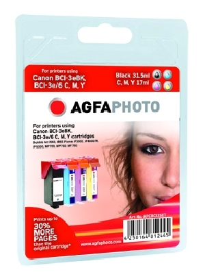 AgfaPhoto APCBCI3SET. Цвета печати: Черный, Бирюзовый, Маджента, Желтый, Совместимые продукты: BCI-3eBK, BCI-3eC/6C, BCI-3eM/6M, BCI-3eY/6Y, Тип отделки: High-gloss