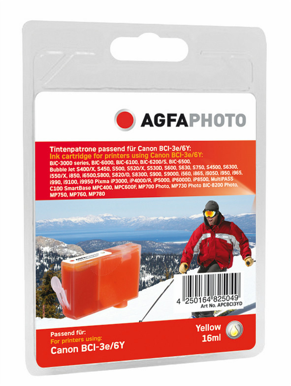 AgfaPhoto APCBCI3YD. Цвета печати: Желтый, Совместимые продукты: Canon BJ 535 PD, 895 PD, Canon BJC 6000, 6500, Тип упаковки: Блистер