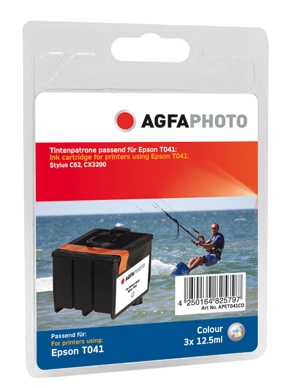 AgfaPhoto APET041CD. Цвета печати: Бирюзовый, Маджента, Желтый, Совместимые продукты: Seiko Precision CDP 2500 / CDP2500Plus / CDP2500Photo Epson Stylus C 62 / CX 3200, Технология печати: Струйный