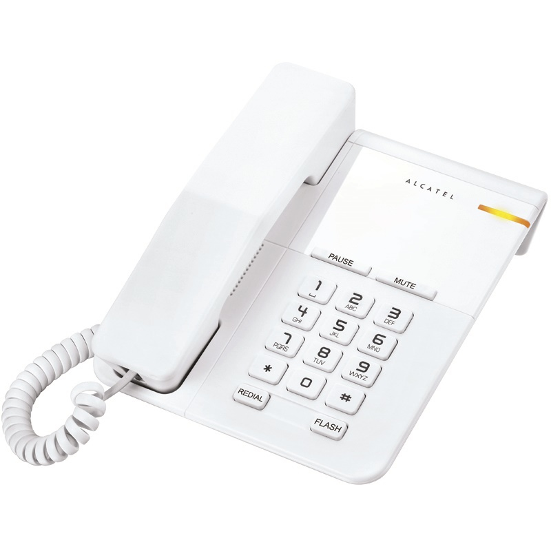 Alcatel T22. Тип: Аналоговый, Тип сигнала вызова: Monophonic. Тип крепления: Стол / Стена, Цвет товара: Белый. Расположение прибора для набора номера: Base, Вызов: Tone/Pulse. Регулятор громкости: Цифровой. Светодиодные индикаторы: Звонок