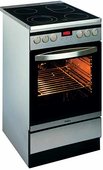 Amica CPL5642Di. Тип продукта: Отдельностоящий, Цвет товара: Нержавеющая сталь, Тип управления: Вращающийся. Тип варочной поверхности: Ceramic hob, Тип верхней поверхности: Kерамический. Oven power source: Электрический, Oven gross capacity: 53 л, Общий объем духовки(ок): 53 л. Класс энергоэффективности: A, Потребляемая мощность (в обычном режиме): 9400 Вт. Ширина: 500 мм, Глубина: 600 мм, Высота: 850 мм