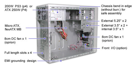Aopen H450A MINI TOWER 300W. Отделения: 3.5" *2/1(external/internal), 5.25" *2/0(external/internal), Совместимость: FlexATX/MicroATX. Ширина: 200 мм, Глубина: 430 мм, Высота: 355 мм