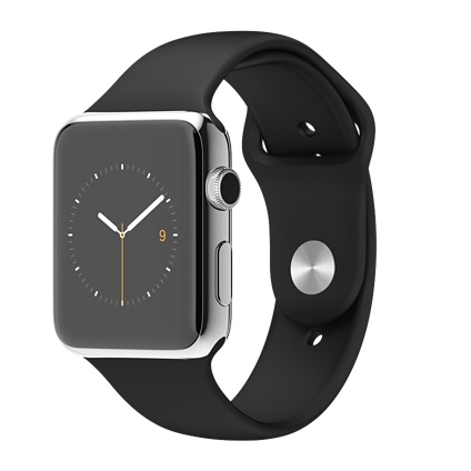 Apple Watch. Цвет корпуса: Нержавеющая сталь, Материал корпуса: Нержавеющая сталь, Цвет ремешка: Черный. Емкость RAM: 512 МБ, Флэш-память: 8 ГБ. Wi-Fi стандартов: 802.11b,802.11g,802.11n. Технология батареи: Литий-ионная (Li-Ion), Срок службы батареи: 18 ч. Ширина: 35,9 мм, Глубина: 42 мм, Толщина: 1,05 см