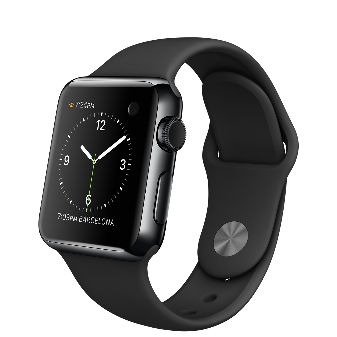 Apple Watch. Цвет корпуса: Черный, Материал корпуса: Нержавеющая сталь, Цвет ремешка: Черный. Емкость RAM: 512 МБ, Флэш-память: 8 ГБ. Wi-Fi стандартов: 802.11b,802.11g,802.11n. Технология батареи: Литий-ионная (Li-Ion), Срок службы батареи: 18 ч, Время работы в режиме разговора: 3 ч. Ширина: 33,3 мм, Глубина: 38,6 мм, Толщина: 1,05 см