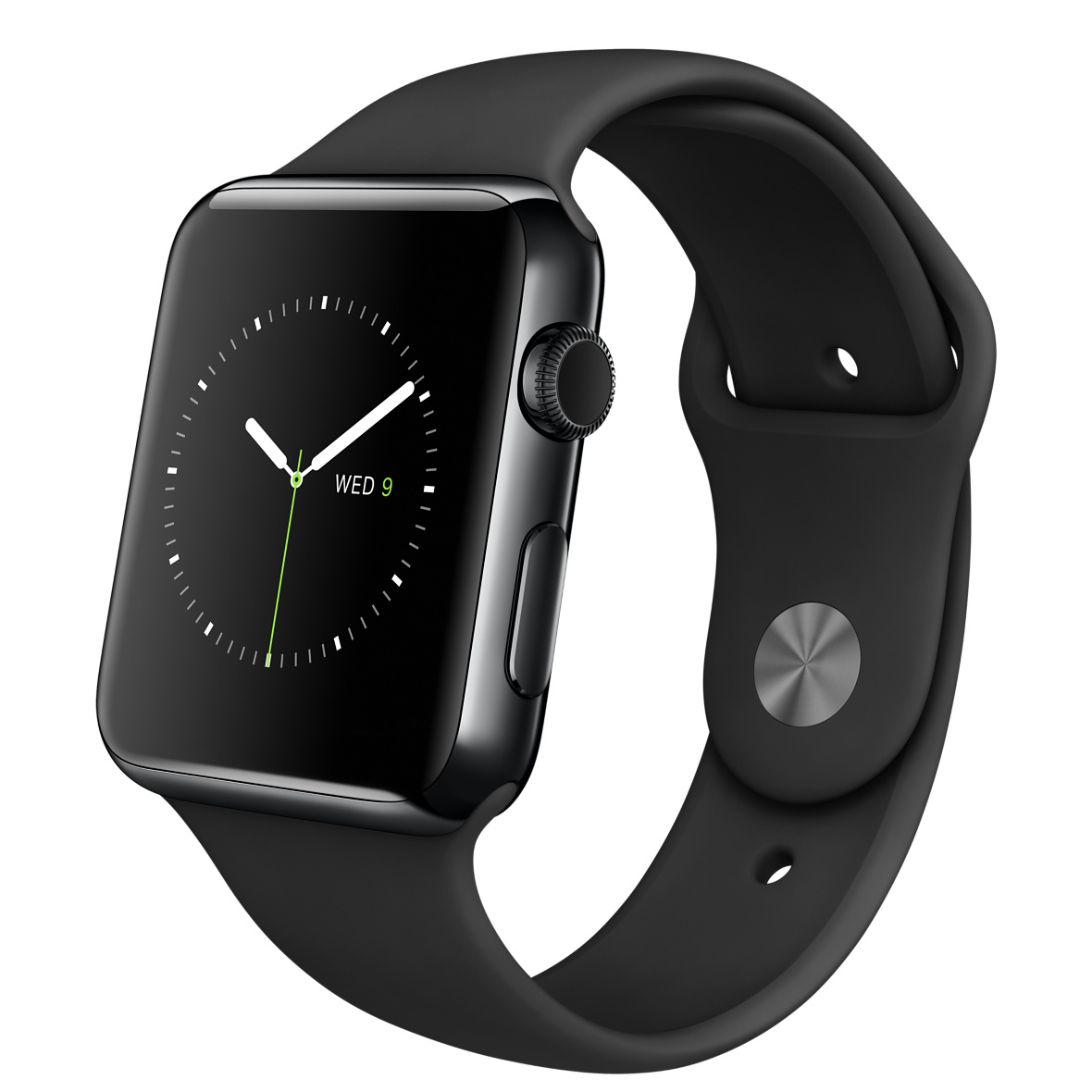 Apple Watch. Цвет корпуса: Черный, Материал корпуса: Нержавеющая сталь, Цвет ремешка: Черный. Емкость RAM: 512 МБ, Флэш-память: 8 ГБ. Wi-Fi стандартов: 802.11b,802.11g,802.11n. Технология батареи: Литий-ионная (Li-Ion), Срок службы батареи: 18 ч, Время работы в режиме разговора: 3 ч. Ширина: 35,9 мм, Глубина: 42 мм, Толщина: 1,05 см