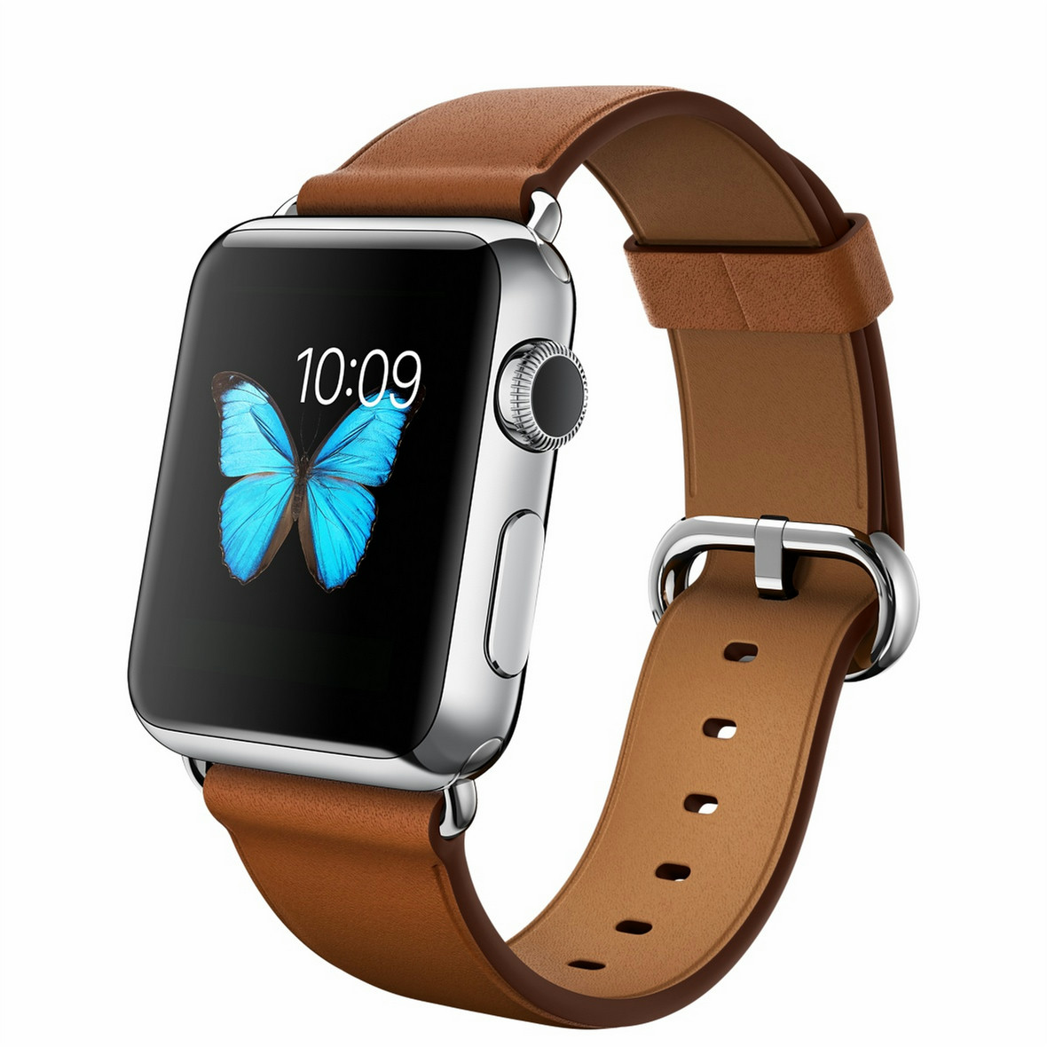 Apple Watch. Цвет корпуса: Нержавеющая сталь, Материал корпуса: Нержавеющая сталь, Цвет ремешка: Коричневый. Емкость RAM: 512 МБ, Флэш-память: 8 ГБ. Wi-Fi стандартов: 802.11b,802.11g,802.11n. Технология батареи: Литий-ионная (Li-Ion), Срок службы батареи: 18 ч, Время работы в режиме разговора: 3 ч. Ширина: 33,3 мм, Глубина: 38,6 мм, Толщина: 1,05 см