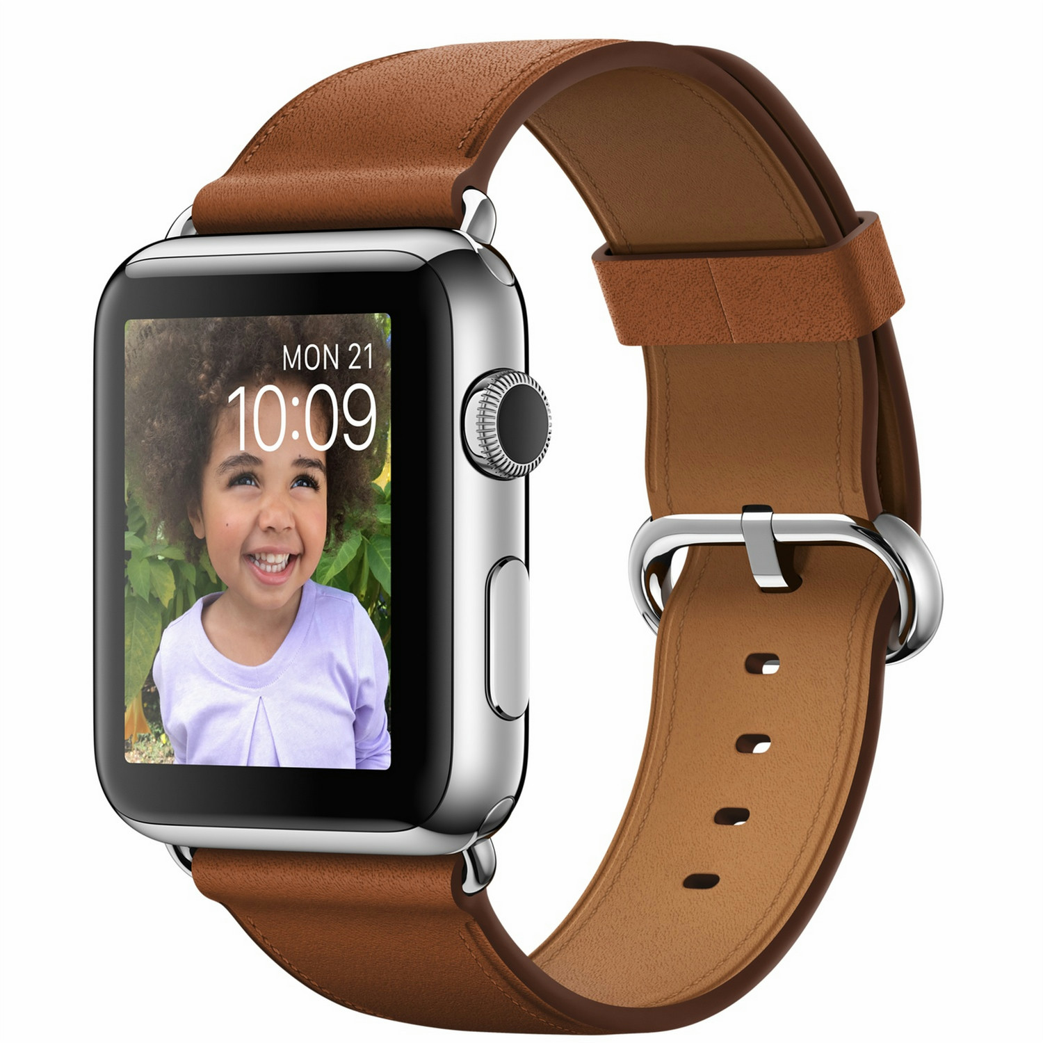 Apple Watch. Цвет корпуса: Нержавеющая сталь, Материал корпуса: Нержавеющая сталь, Цвет ремешка: Коричневый. Емкость RAM: 512 МБ, Флэш-память: 8 ГБ. Wi-Fi стандартов: 802.11b,802.11g,802.11n. Технология батареи: Литий-ионная (Li-Ion), Срок службы батареи: 18 ч. Ширина: 35,9 мм, Глубина: 42 мм, Толщина: 1,05 см
