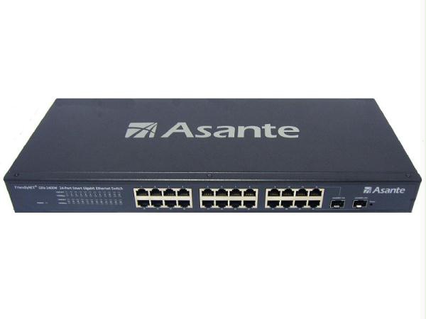 Asante GX6-2400W. Стандарты сети: IEEE 802.1D,IEEE 802.1Q,IEEE 802.1w,IEEE 802.1x,IEEE 802.3,IEEE 802.3ab,IEEE 802.3ad,IEEE 802.3u,IEE. Размер адресной таблицы: 8000 записей, Коммутационная способность: 48 Гбит/с, Поддерживаемые скорости передачи данных: 10/100/1000 Mbps. Оптоволоконный коннектор: SFP. Поддерживаемые сетевые протоколы: SNMP. Входное напряжение: 100 - 240