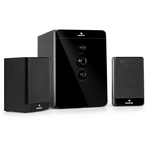 Auna FS23. Рекомендованное применение: Универсальный. Тип сабвуфера: Active subwoofer. Источник питания: Кабель переменного тока. Размеры (ШxГхВ) колонок-сателлитов: 95 x 95 x 150 мм, Размеры сабвуфера (ШxГхВ): 165 x 240 x 265 мм. Поставляемые кабели: RCA