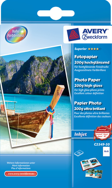 Avery Superior Inkjet, 10x15, 200g Gloss Белый фотобумага