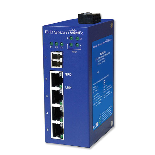 B&B Electronics ESWP205-1SFP-T. Тип свича: Неуправляемый. Тип RJ-45 Ethernet портов для основного подключения: Fast Ethernet (10/100), Тип свивки медного Ethernet: 10BASE-T,100BASE-FX,100BASE-TX. Стандарты сети: IEEE 802.3,IEEE 802.3af,IEEE 802.3at,IEEE 802.3u,IEEE 802.3x. Размер адресной таблицы: 1000 записей, Пропускная способность: 148,8 Мп/с. Оптоволоконный коннектор: SFP