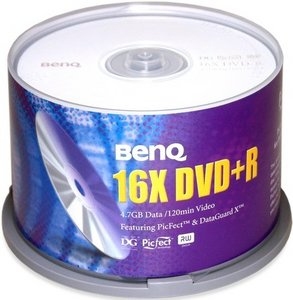Benq 100xDVD+R 4.7GB 120Min. Емкость до сжатия: 4,7 ГБ, Тип: DVD+R, Количество в упаковке: 100 шт