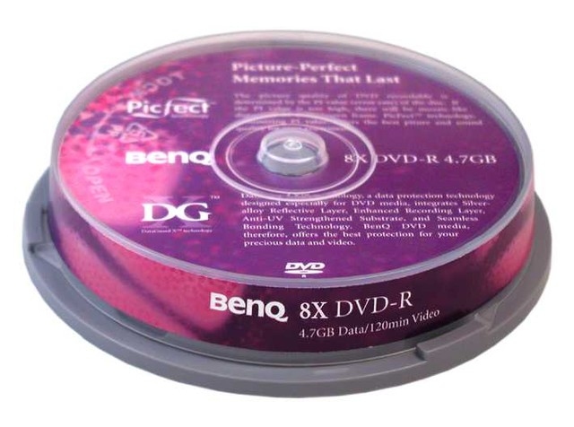 Benq DVD-R 4,7GB 120Min 8x Cake Box 10pk. Емкость до сжатия: 4,7 ГБ, Тип: DVD-R, Количество в упаковке: 10 шт. Тип упаковки: cakebox