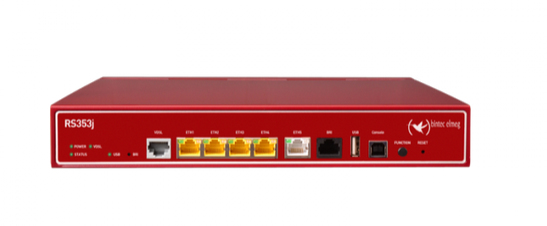Bintec-elmeg RS353j. Скорость передачи данных Ethernet LAN: 10,100,1000 Мбит/с, Свивка кабеля: 10/100/1000Base-T(X). Порт WAN: Ethernet (RJ-45), Версия USB: 2.0. Подключение xDSL: ADSL2+. Цвет товара: Красный. Входящее напряжение сети: 110-240 В, Потребляемая мощность (в обычном режиме): 5 Вт, Ток на входе: 1.5
