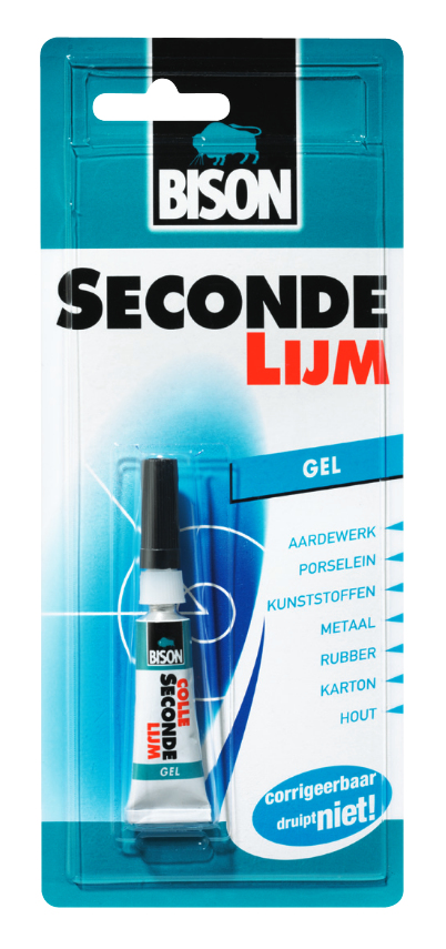 Non-drip, bonds all kinds of materials in seconds. Sticks wood, crockery, stone, metal, rubber and plastics. 3 gr.