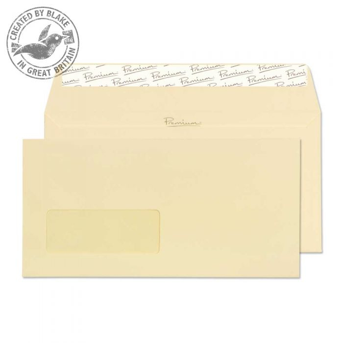 Blake 95265, Premium. Цвет товара: Cream, Размеры окна: 35 x 90 мм, Плотность бумаги: 120 г/м². Ширина: 110 мм, Длина: 22 см. Количество в упаковке: 50 шт