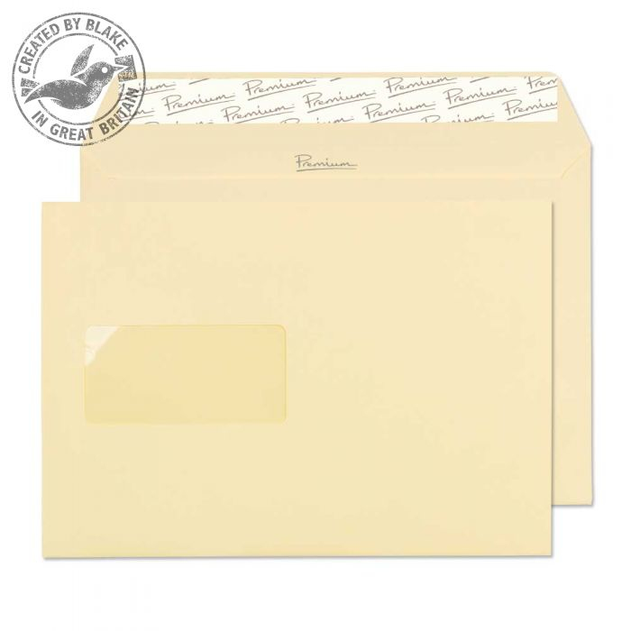 Blake 51708, Premium. Формат конверта (ISO 269): C5 (162 x 229 mm), Цвет товара: Cream, Размеры окна: 45 x 90 мм. Ширина: 22,9 см, Длина: 16,2 см. Количество в паллете: 35000 шт
