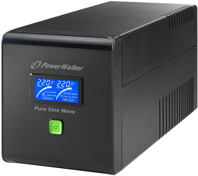 BlueWalker 10120081. Выходная мощность: 750 ВА, Выходная мощность: 480 Вт, Входное напряжение (мин): 162 В. Типы розеток: Тип F, Количество розеток: 4 розетка(и). Время подзарядки батареи: 6 ч, Обычное время резервирования при половинной загрузке: 6,5 мин, Обычное время резервирования при полной загрузке: 0,2 мин. Формат: Компактный, Цвет товара: Черный, Дисплей: ЖК. UPS topology: Интерактивная, Время отклика: 6 мс, Тип охлаждения: Пассивный