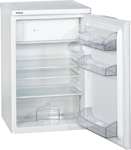 Bomann KS 107. Тип корпуса: Портативный, Цвет товара: Белый, Дверная петля: Справа. Размещение морозильной камеры: Расположен сверху, Star рейтинг: 4*. Класс энергоэффективности: A+. Тип двери: Одиночный, Требования к питанию: 230 V