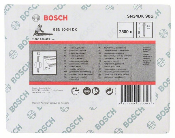 Bosch 2608200009. Тип продукта: Brad nail. Длина: 9 см. Количество в упаковке: 2500 шт