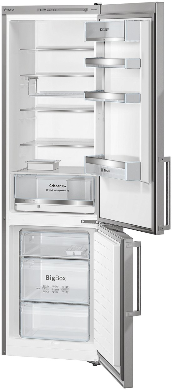 Bosch KGV39EI31. Тип корпуса: Отдельностоящий, Цвет товара: Нержавеющая сталь, Дверная петля: Справа. Тип климата: SN-T. Тип лампы: LED, Диапазон температуры холодильной камеры: 4 - 8 °C. Размещение морозильной камеры: Расположен снизу, Star рейтинг: 4*. Класс энергоэффективности: A++