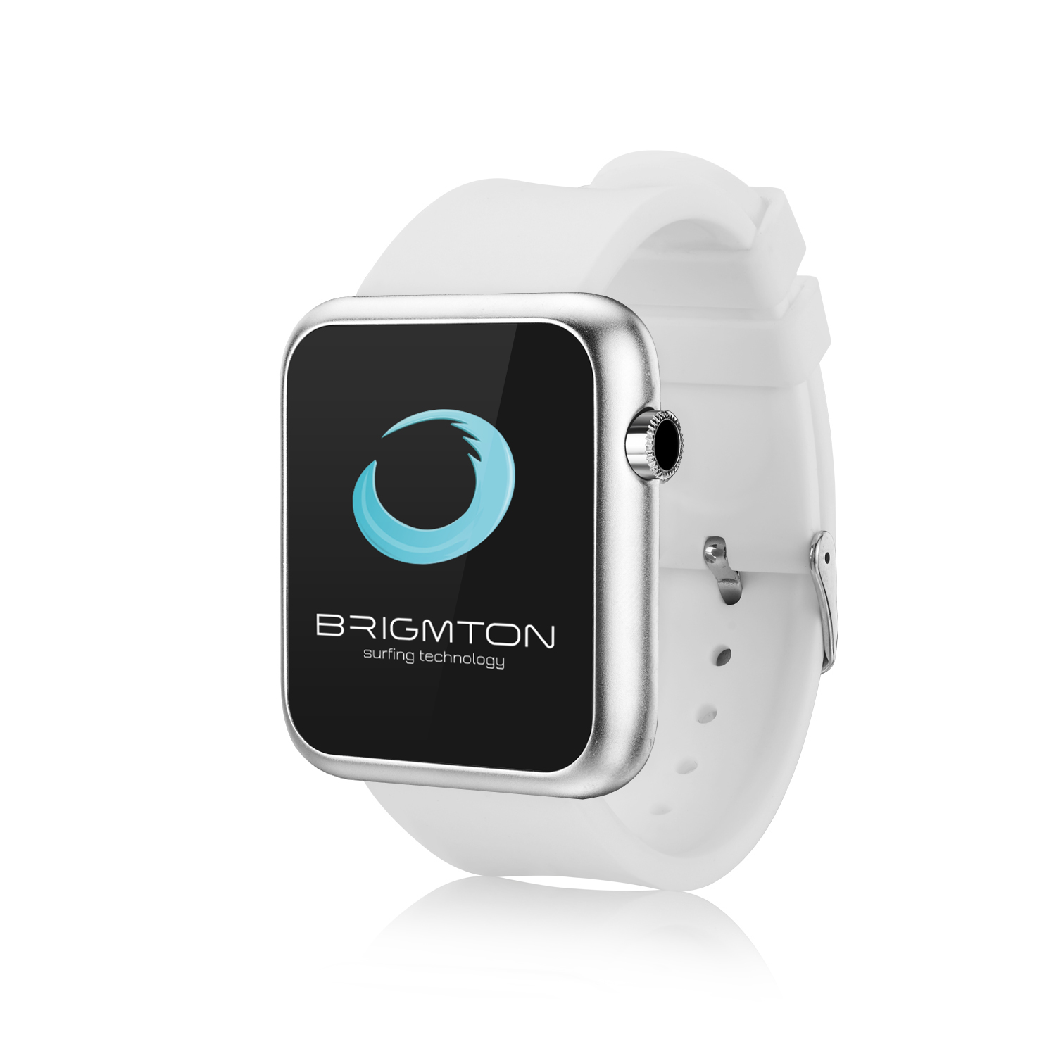 Brigmton BWATCH-BT3B. Цвет корпуса: Cеребряный, Цвет ремешка: Белый, Материал браслета: Прорезиненный. Емкость RAM: 32 МБ, Флэш-память: 0,032 ГБ. Тип USB коннектора: Micro-USB. Емкость батареи: 320 мА·ч, Срок службы батареи: 160 ч, Время работы в режиме разговора: 6 ч. Ширина: 39 мм, Глубина: 44,5 мм, Толщина: 1,15 см