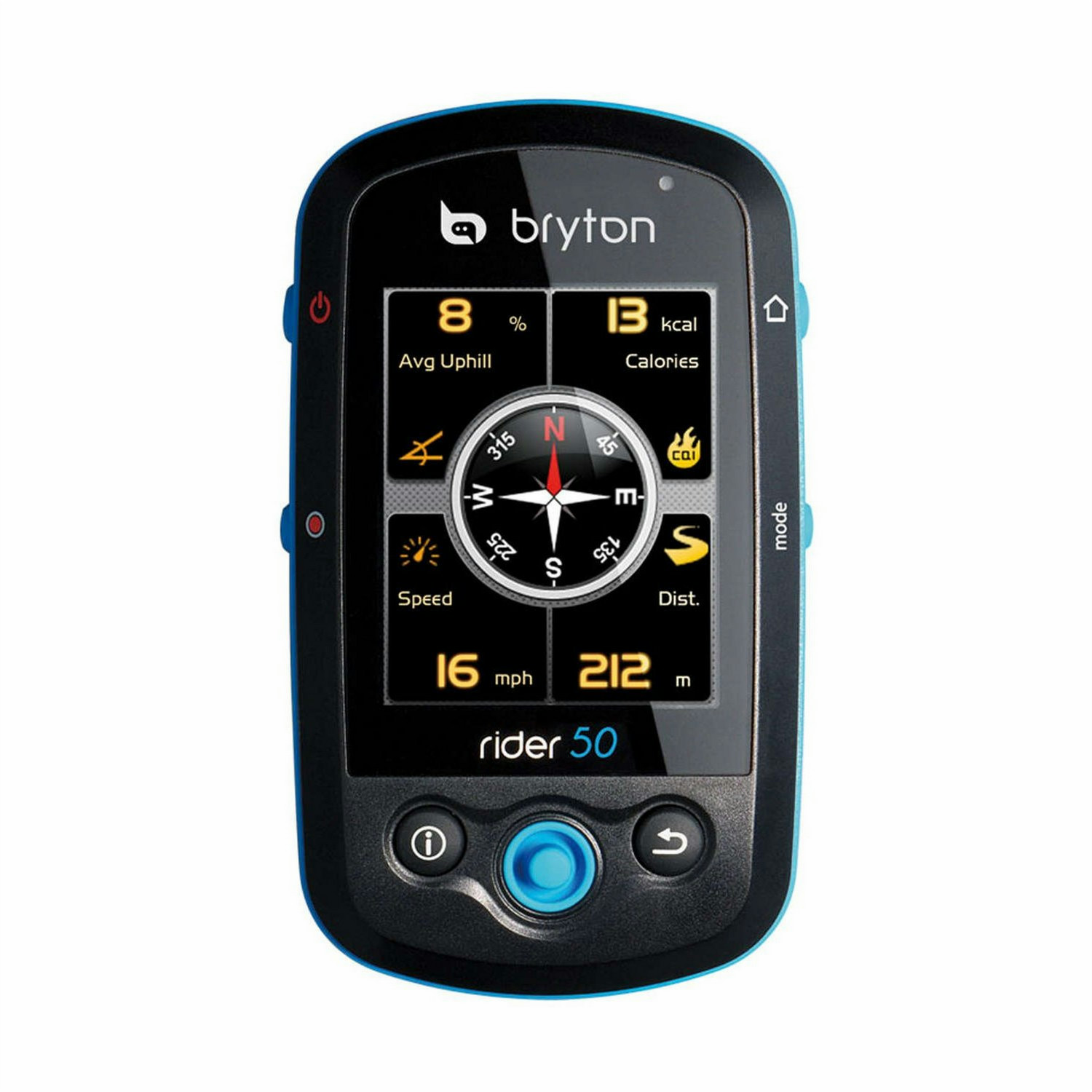 Bryton Rider 50. Покрытие карты: Вся Европа. Дисплей: ЖК. Тип носителя памяти: Флеш, Совместимые карты памяти: microSD (TransFlash). Формат: Портативный, Цвет товара: Черный, Синий. Тип источника питания: Аккумулятор
