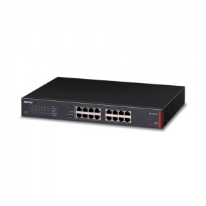 Buffalo BS-GU2016P. Тип свича: Unmanaged network switch. Тип RJ-45 Ethernet портов для основного подключения: Gigabit Ethernet (10/100/1000), Тип свивки медного Ethernet: 10BASE-T,100BASE-TX,1000BASE-T. Стандарты сети: IEEE 802.3,IEEE 802.3ab,IEEE 802.3af,IEEE 802.3u,IEEE 802.3x, Поддерживаемые типы кабеля: Cat3,Cat4,Cat5,Cat5e,Cat6,Cat6a,Cat6e,Cat7. Размер адресной таблицы: 8190 записей, Коммутационная способность: 32 Гбит/с, Скорость пересылки пакетов (1 Гб/с): 1488095 п/с. Цвет товара: Черный, Материал корпуса: Металл, Сертификация: VCCI A, UL60950-1, FCC A, IC A, VCCI A