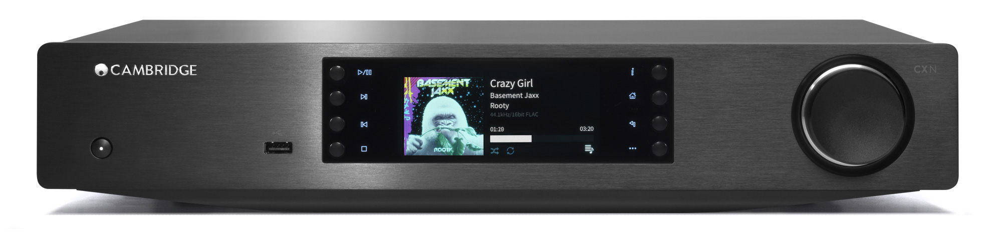 Интуитивно понятный в использовании, CXN имеет изысканный 4.3” (11 см) цветной дисплей, а также может управляться с помощью бесплатного приложения Cambridge Connect для Apple и Android устройств. Просмотр музыки по альбомам, исполнителям, воспроизведения и многое другое; это красивый, простой и легкий способ сразу увидеть, что вы слушаете.