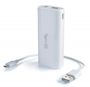 Celly PB3600W. Цвет товара: Белый, Совместимые устройства: Универсальный. Емкость батареи: 3600 мА·ч, Источник зарядки: USB, Выходное напряжение: 5 В. Тип входного USB порта: Micro-USB. Поставляемые кабели: micro USB
