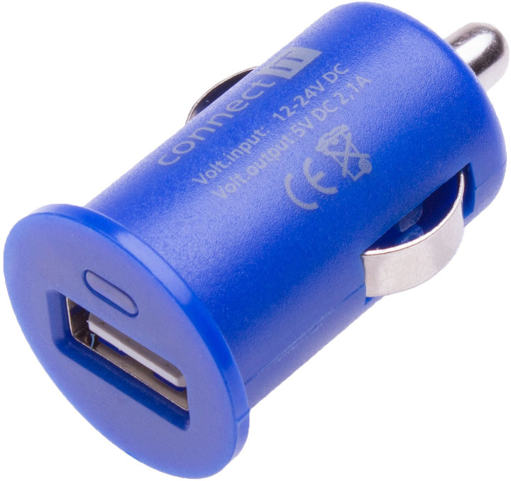 Connect IT CI-589. Тип зарядного устройства: Авто, Совместимые устройства: Универсальный, Тип источника питания: Прикуриватель. Цвет товара: Синий. Входное напряжение: 12 - 24, Выходное напряжение: 5 В, Выходной ток: 2100 мА