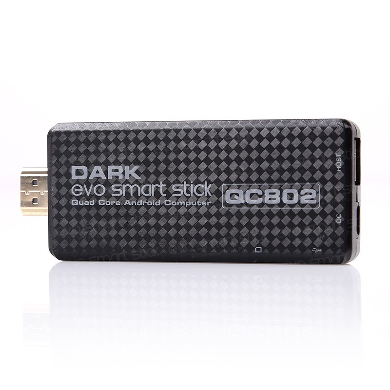 Dark Evo Smart Stick QC802. Тактовая частота процессора: 1,6 ГГц, Модель процессора: RK3188, Семейство процессоров: Rockchip. Полный объем хранения: 8 ГБ, Носитель: Флеш. Оперативная память: 1 ГБ, Тип внутренней памяти: DDR3-SDRAM. Модель встроенного графического адаптера: ARM Mali-400. Wi-Fi стандартов: 802.11n