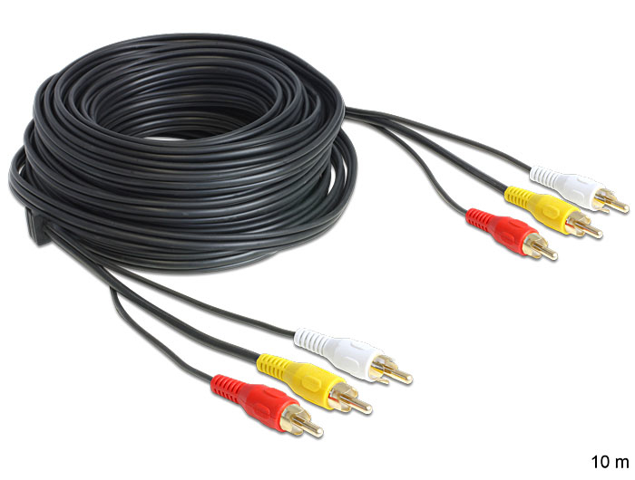 DeLOCK 10m, 3xRCA - 3xRCA. Длина кабеля: 10 м, Разъем 1: 3 x RCA, Разъем 2: 3 x RCA