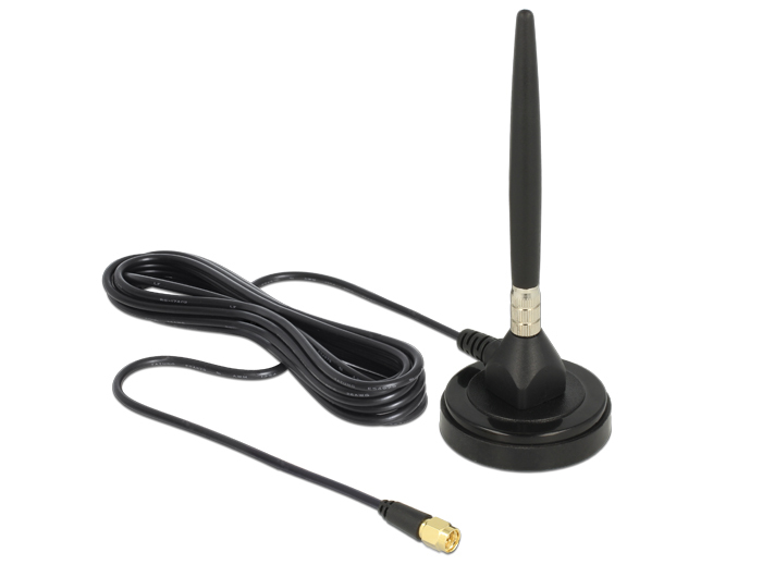 DeLOCK 12421. Коэффициент усиления антенны (макс): 3 дБи, Полоса частот: 0.824 - 0.96 / 1.71 - 2.17, Полное сопротивление: 50 Ом. Тип антенны: Omni-directional antenna, Тип разъема антенны: SMA, Тип рода: Мужской. Ширина: 50 мм, Глубина: 50 мм, Высота: 138 мм. Тип упаковки: Полиэтиленовый мешок
