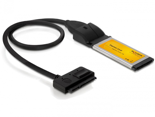 DeLOCK 61774. Основной интерфейс: ExpressCard, Выходящий интерфейс: SATA. Цвет товара: Черный. Скорость передачи данных: 3000 Мбит/с, Длина кабеля: 0,5 м, Технология подключения: Проводная