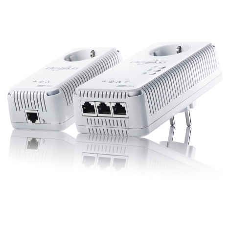 Devolo dLAN 500 AV Wireless+. Технология подключения: Проводной/беспроводной, Основной интерфейс: PowerPlug, Интерфейс: Ethernet/WLAN. Свивка кабеля: 10/100BaseT(X), Стандарты сети: IEEE 802.11a, IEEE 802.11b, IEEE 802.11g, IEEE 802.11n, IEEE 802.1p, IEEE 802.3, IEEE 802.3u, IEEE 8, Методы расширения спектра: DSSS. Основной стандарт Wi-Fi: IEEE 802.11n, Wi-Fi стандартов: IEEE 802.11a, IEEE 802.11b, IEEE 802.11g, IEEE 802.11n. Цвет товара: Белый. Алгоритмы шифрования данных: 128-bit AES, WEP, WPA, WPA2, WPS-PBC, WPS-PIN