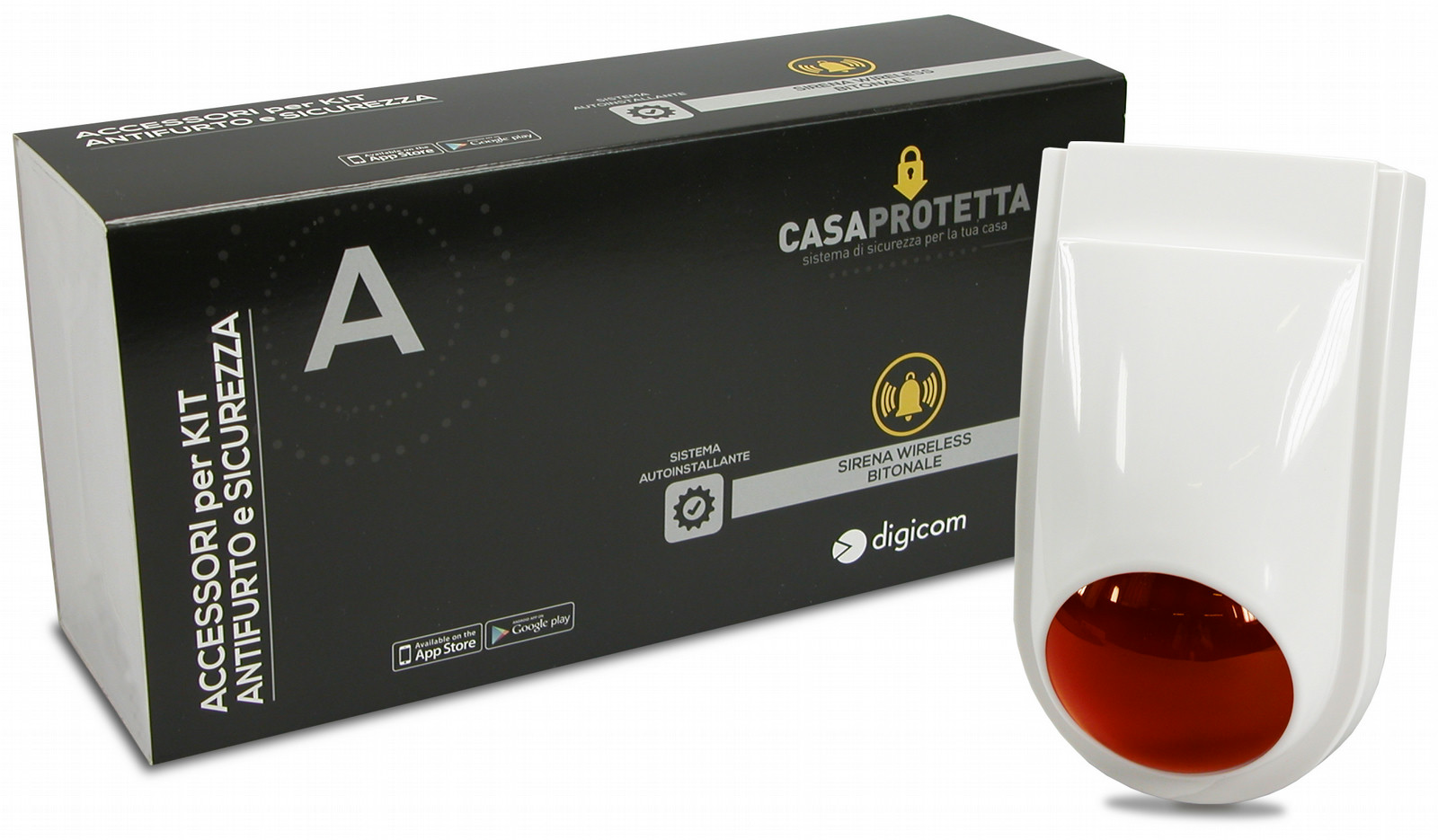Digicom 8D5815DA. Тип: Wireless siren, Placement available: Для помещений, Мощность сигнала тревоги: 120 дБ. Технология батареи: Никель-металл-гидридный (NiMH), Тип батареек: AAA, Напряжение батареи: 7,2 В. Размеры (ШхГхВ): 115 x 80 x 200 мм, Размеры упаковки (ШхГхВ): 250 x 75 x 120 мм