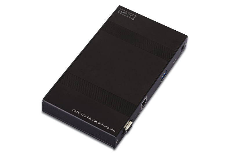 Digitus DC-53402. Тип видео порта: VGA, Разъем(ы): 1x VGA, 1x RJ-45. Максимальное разрешение: 1280 x 1024 пикселей. Цвет товара: Черный. Размеры (ШхГхВ): 130 x 110,5 x 25 мм