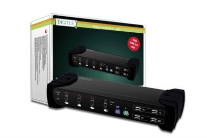 Digitus DS-12800. Тип порта клавиатуры: USB, PS/2, Тип порта мыши: USB, PS/2, Тип видео порта: DVI-I. Цвет товара: Черный. Вес: 1,06 кг. Технология подключения: Проводная, Размеры (ШхГхВ): 275 x 60 x 95 мм