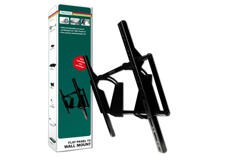 Digitus LCD/Plasma wall mount for up to 65" TV. Максимальная емкость (вес): 80 кг. Цвет товара: Черный. Ширина: 760 мм, Глубина: 800 мм, Высота: 520 мм