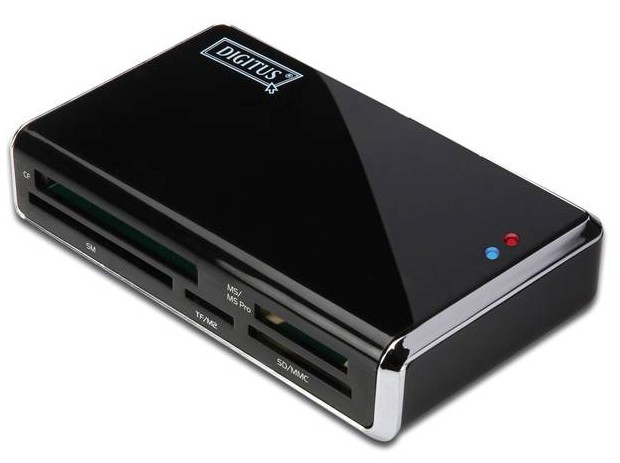 Digitus USB 2.0 Card Reader. Совместимые карты памяти: CF, Memory Stick (MS), microSDHC, miniSD, MMC, MS Duo, MS PRO, MS PRO Duo, SD, SDHC. Скорость передачи данных: 480 Мбит/с. Цвет товара: Черный. Совместимые операционные системы: Windows 7, Vista, XP Mac OS X