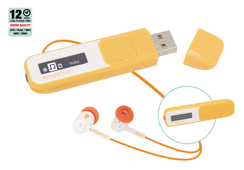 EMGETON CULT X6 4GB. Тип: MP3. Цвет товара: Оранжевый, Белый. Тип носителей для плеера: Flash-media, Полный объем хранения: 4 ГБ. Дисплей: OLED, Диагональ экрана: 2,54 см (1"). Поддерживаемые форматы аудио: APE, CBR, FLAC, MP3, WAV, WMA