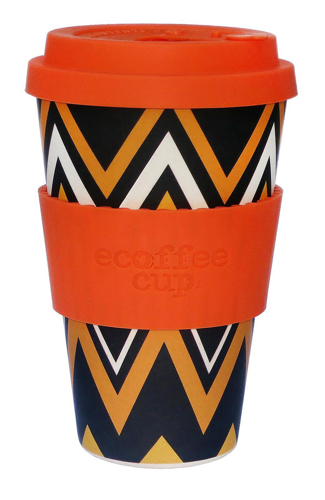 Ecoffee Cup ZignZag. Тип: Одиночный, Объем: 0,4 л, Цвет товара: Черный, Оранжевый, Белый. Количество в упаковке: 1 шт. Вес: 135 г