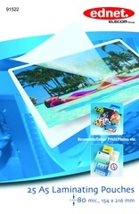 Ednet 25 A5 Laminating Pouches 80 Mic. Цвет товара: Прозрачный, Формат: A5. Ширина: 154 мм, Глубина: 0,0800 мм, Высота: 216 мм. Количество в упаковке: 25 шт