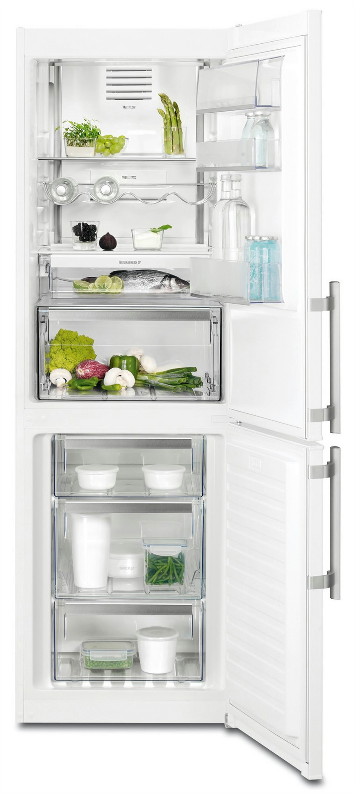 Electrolux EN3390MOW. Тип корпуса: Отдельностоящий, Цвет товара: Белый, Дверная петля: Справа. Суммарная полезная емкость: 298 л, Суммарная максимальная емкость: 332 л, Тип климата: SN-T. Полезная емкость холодильника: 192 л, Тип лампы: LED. Размещение морозильной камеры: Расположен снизу, Полезная емкость морозильной камеры: 91 л, Вместимость морозильной камеры: 4 кг/24ча. Длина кабеля: 1,85 м