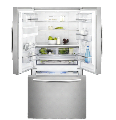 Electrolux EN6084JOX. Тип корпуса: Отдельностоящий, Цвет товара: Нержавеющая сталь, Дизайн: Французская дверь. Суммарная полезная емкость: 536 л, Тип климата: SN-T, Уровень шума: 43 дБ. Полезная емкость холодильника: 417 л. Полезная емкость морозильной камеры: 119 л, Размещение морозильной камеры: Расположен снизу, Вместимость морозильной камеры: 10 кг/24ча. Класс энергоэффективности: A+, Годовое потребление энергии: 410 кВт·ч, Входящее напряжение сети: 220 - 240 В
